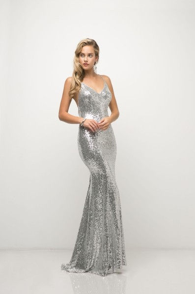 Silver Sequins Evening Dress